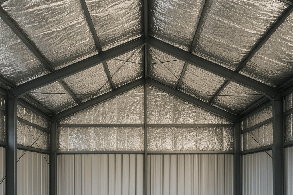 - Install the radiant barrier over the purlins before placing the metal roof panels.