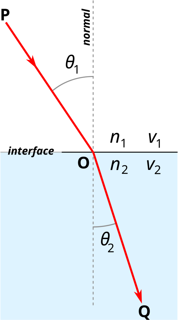 Snell’s Law – Refraction Direction: Although metals like aluminum don’t transmit light well (transmission is ~0), Snell’s Law helps define angles at interfaces: