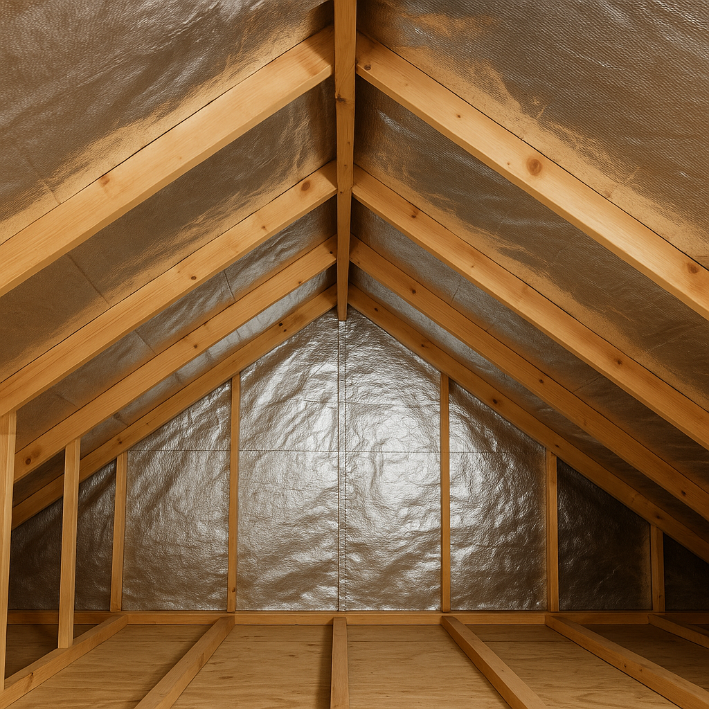 There’s no need to pay a premium for radiant barrier roof sheathing when you can easily create your own at a much lower cost. Just unroll our Silverback radiant barrier over standard OSB or plywood and staple it in place. The 48″ wide material is sized for a perfect fit and streamlined installation.
